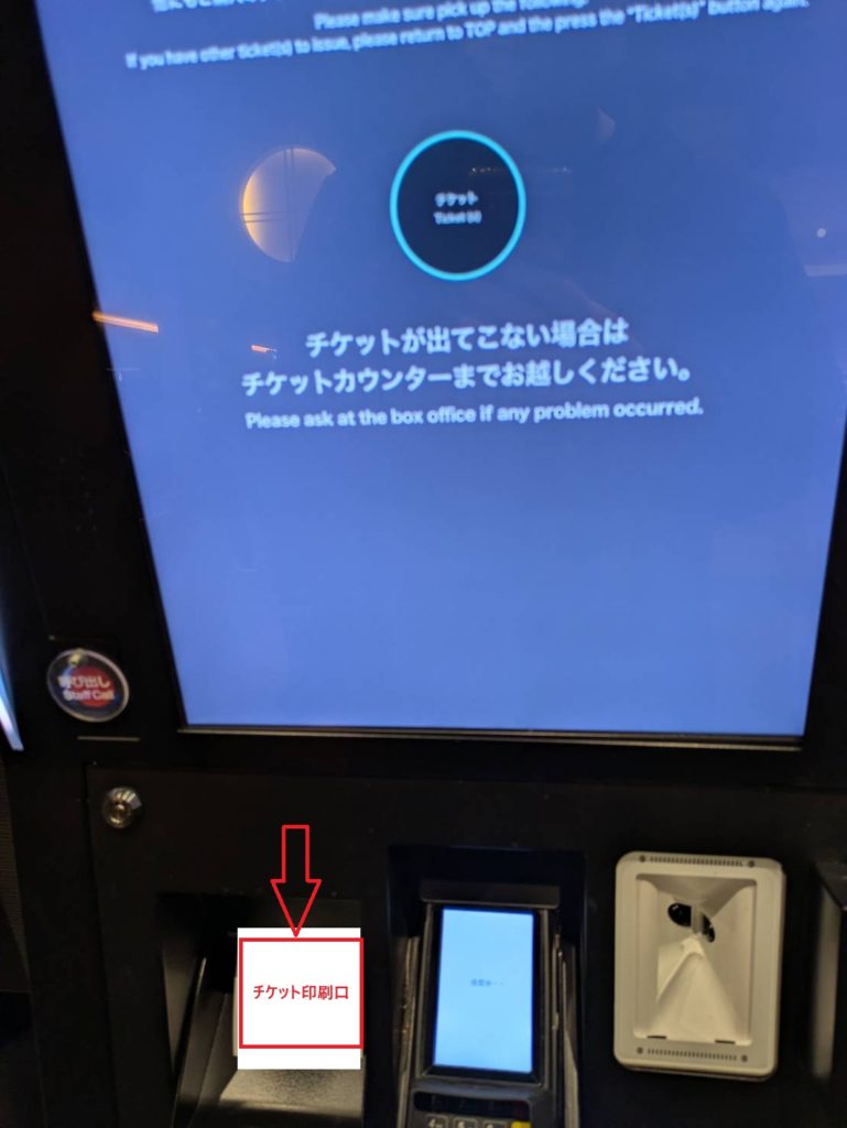 「発券する」を押すと、下部からチケットとレシートが出力されます。