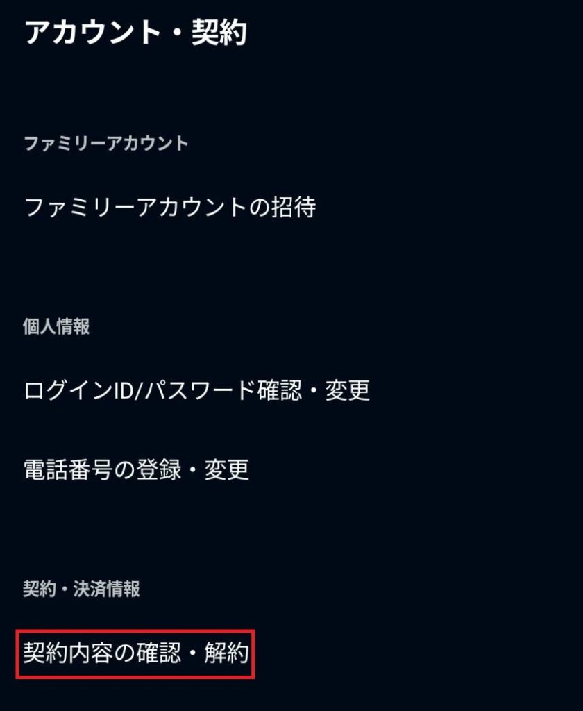 3️⃣ 「契約内容の確認・解約」をクリック